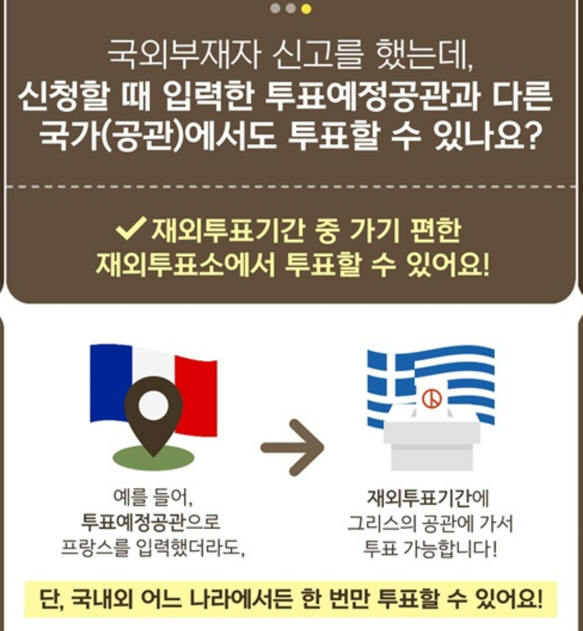 - 재외선거(재외국민 투표) 는 1인 1회만 가능
