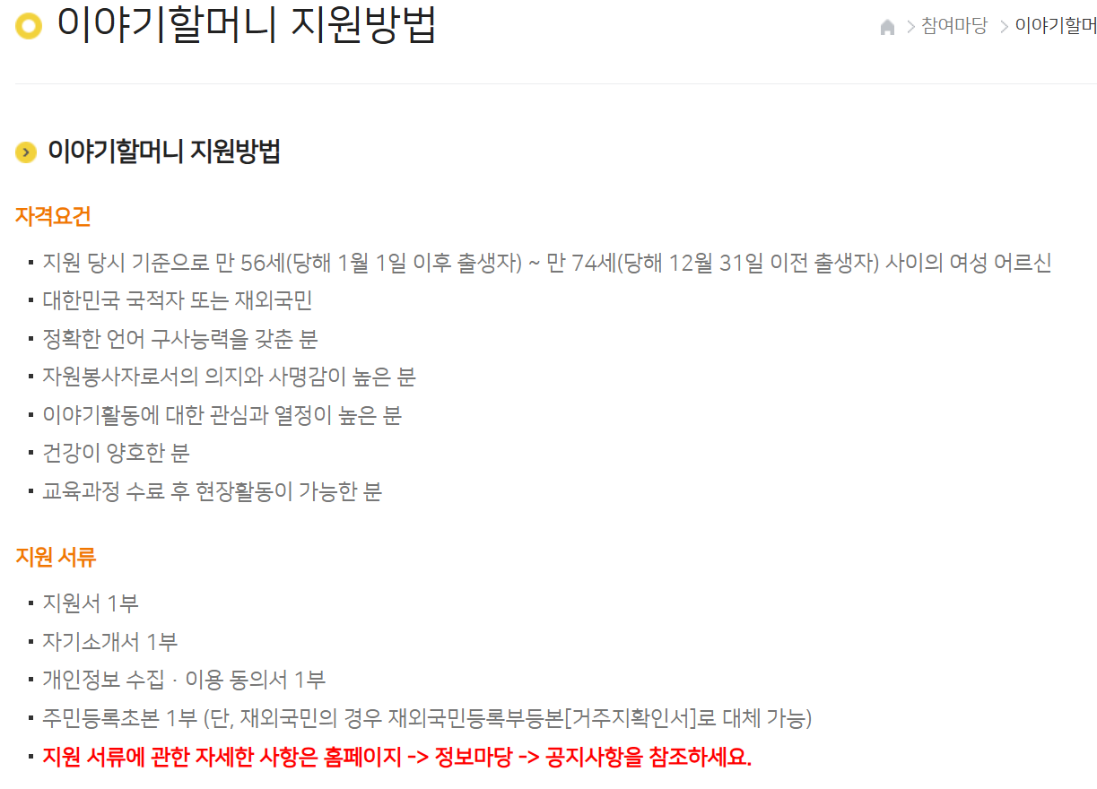 아름다운 이야기 할머니 지원 자격과 취업 방법