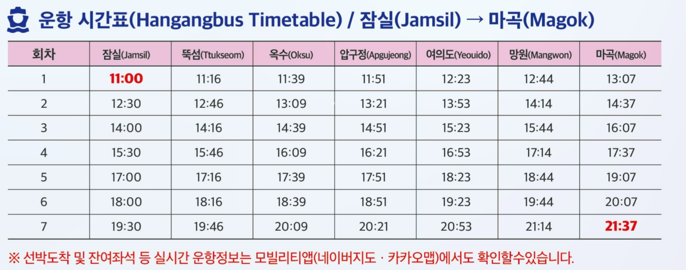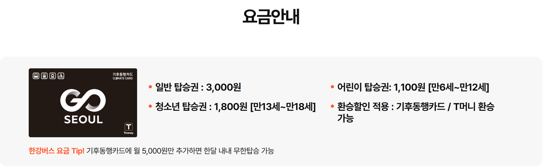 - 요금 3,000원, 기후동행카드 무제한 탑승 가능