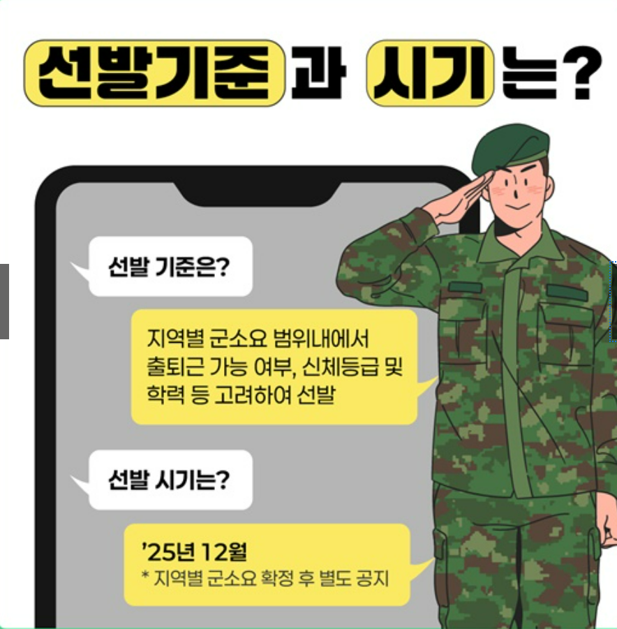상근예비역은 모든 입영 대상자가 자동으로 되는 것이 아니라, 일정한 기준에 따라 병무청이 선발합니다. 이때 중요한 요소는 거주지, 가족 동반 여부, 생계 곤란 여부 등이며, 해당 기준에 따라 선발이 결정됩니다.
