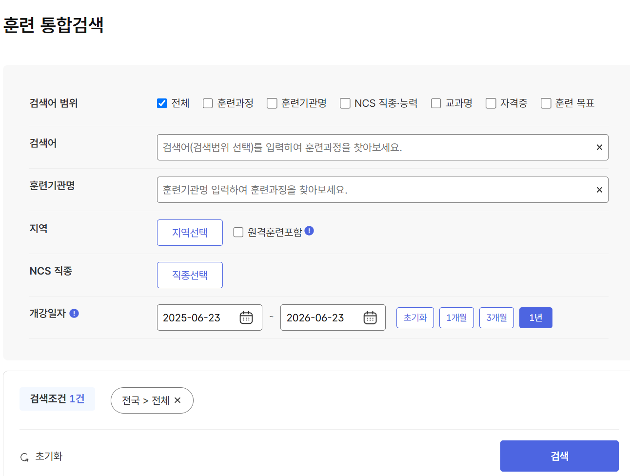 - HRD-Net ▶ 훈련과정 ▶ ‘과정구분: 국민내일배움’을 체크