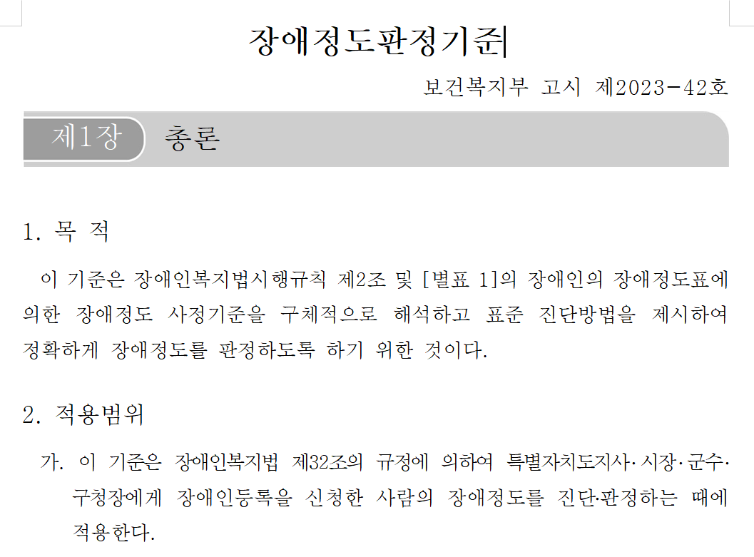 장애등급 판정기준 고시 전문을 확인하고 싶으신가요?