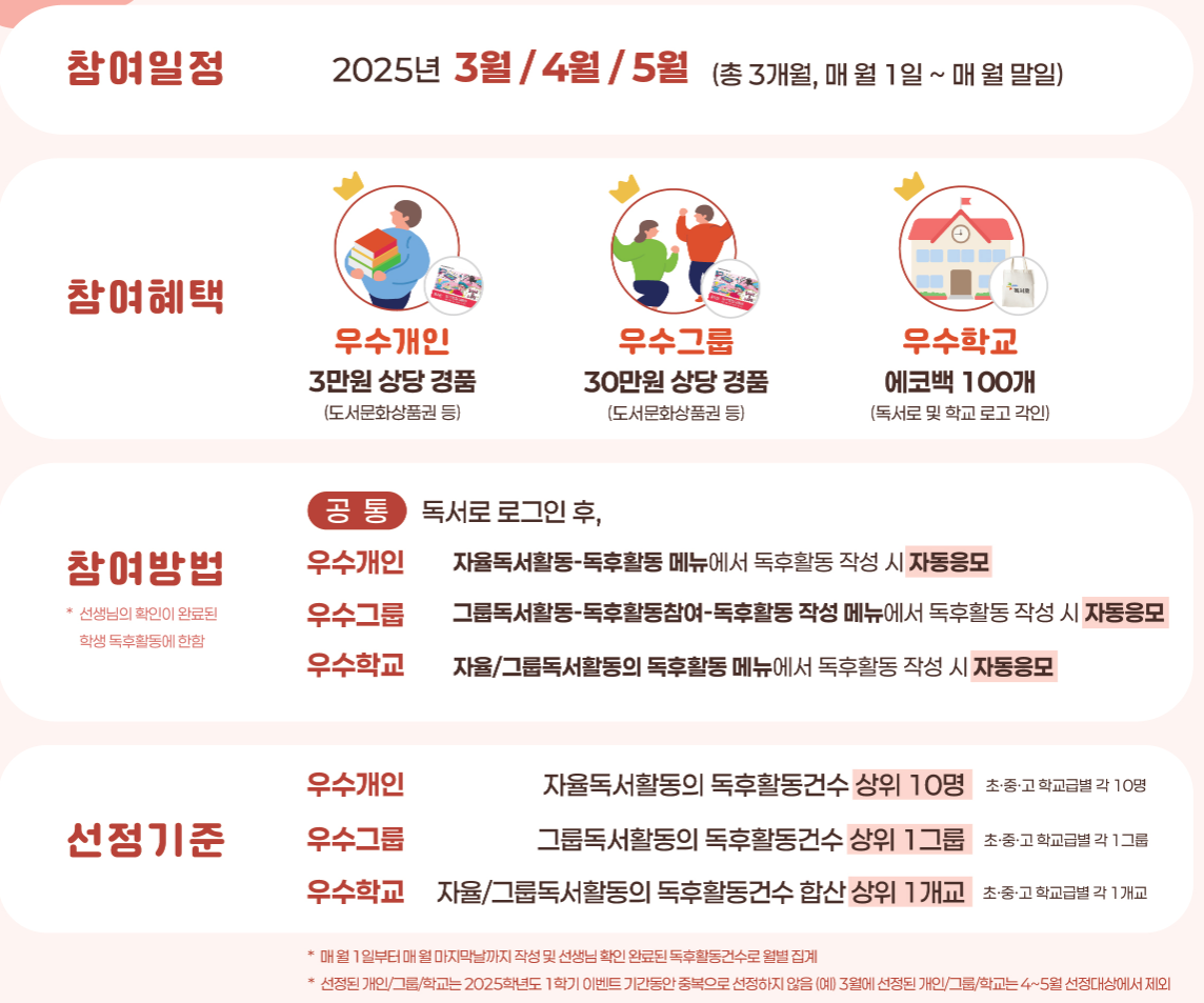 - 학년별 맞춤 도서 제공 (초등 저학년~고등학생)