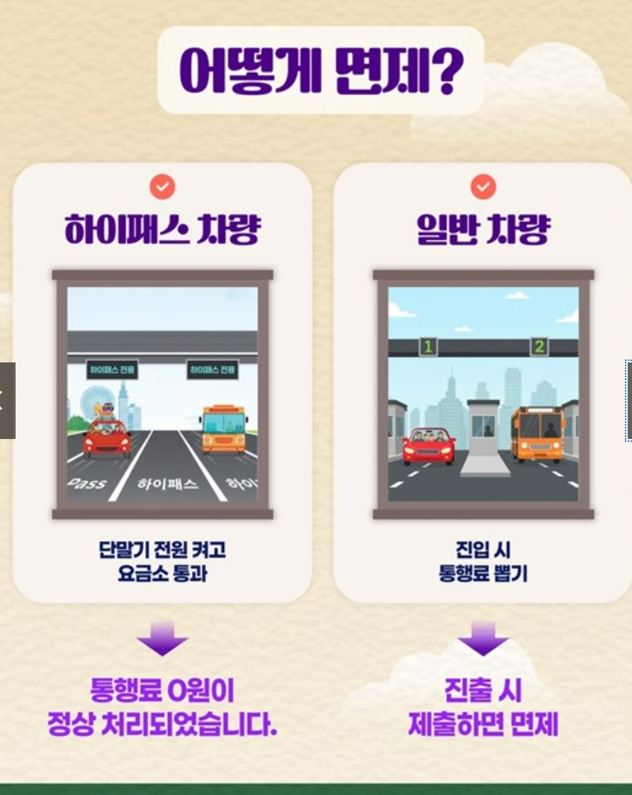 ✔ 전국 고속도로 전면 면제