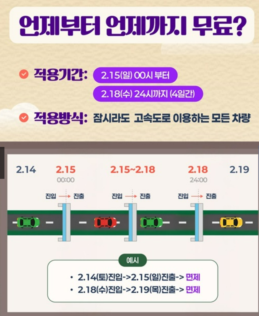 2026년 설날 고속도로 통행료 면제 적용 기간